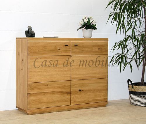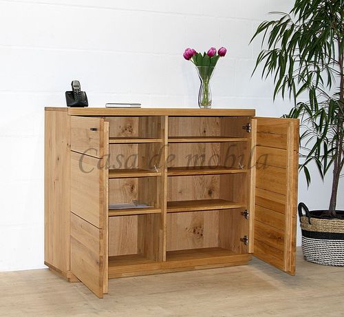 Die Möbelkombination aus dem Programm PINOS überzeugt durch ein modernes Design, hochwertige Materialien und eine warme, natürliche Ausstrahlung. Gefertigt aus massiver Wildeiche und natur geölt, bringt diese Wohnkombination die charakteristische Maserung und den natürlichen Charme des Massivholzes besonders schön zur Geltung.