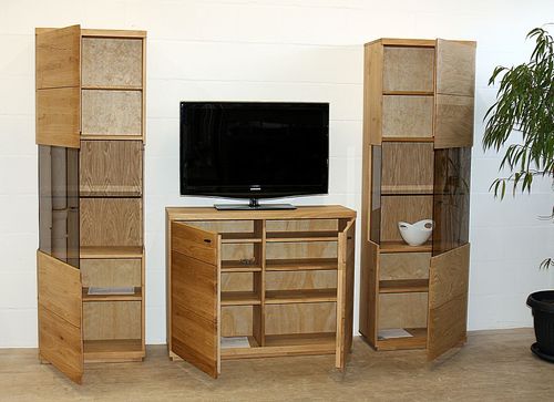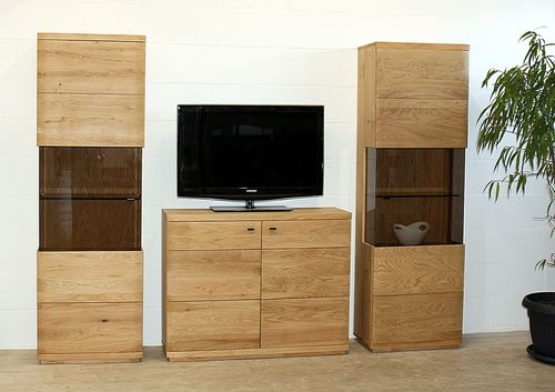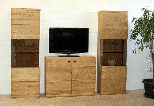 Wohn-Kombination 3-teilig PINOS 251x206x38cm Wildeiche massiv natur geölt