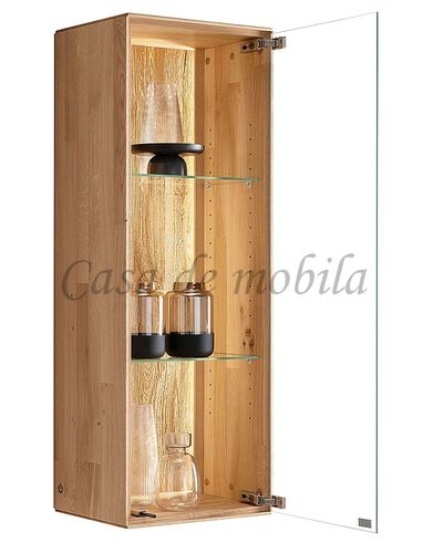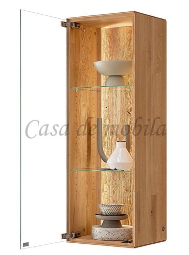 Die beiden Hängevitrine haben eine Glastür mit zwei Glas-Einlegeböden.