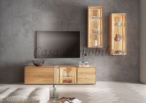 Echtholz Wohnwand 3-teilig | Wildeiche massiv geölt, mit Beleuchtung