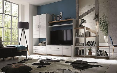 Regalwand Contra 354x197x46cm Kernbuche weiß, Wildeiche geölt