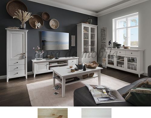 Wohnzimmer-Set 4teilig Kiefer massiv weiß oder gelaugt